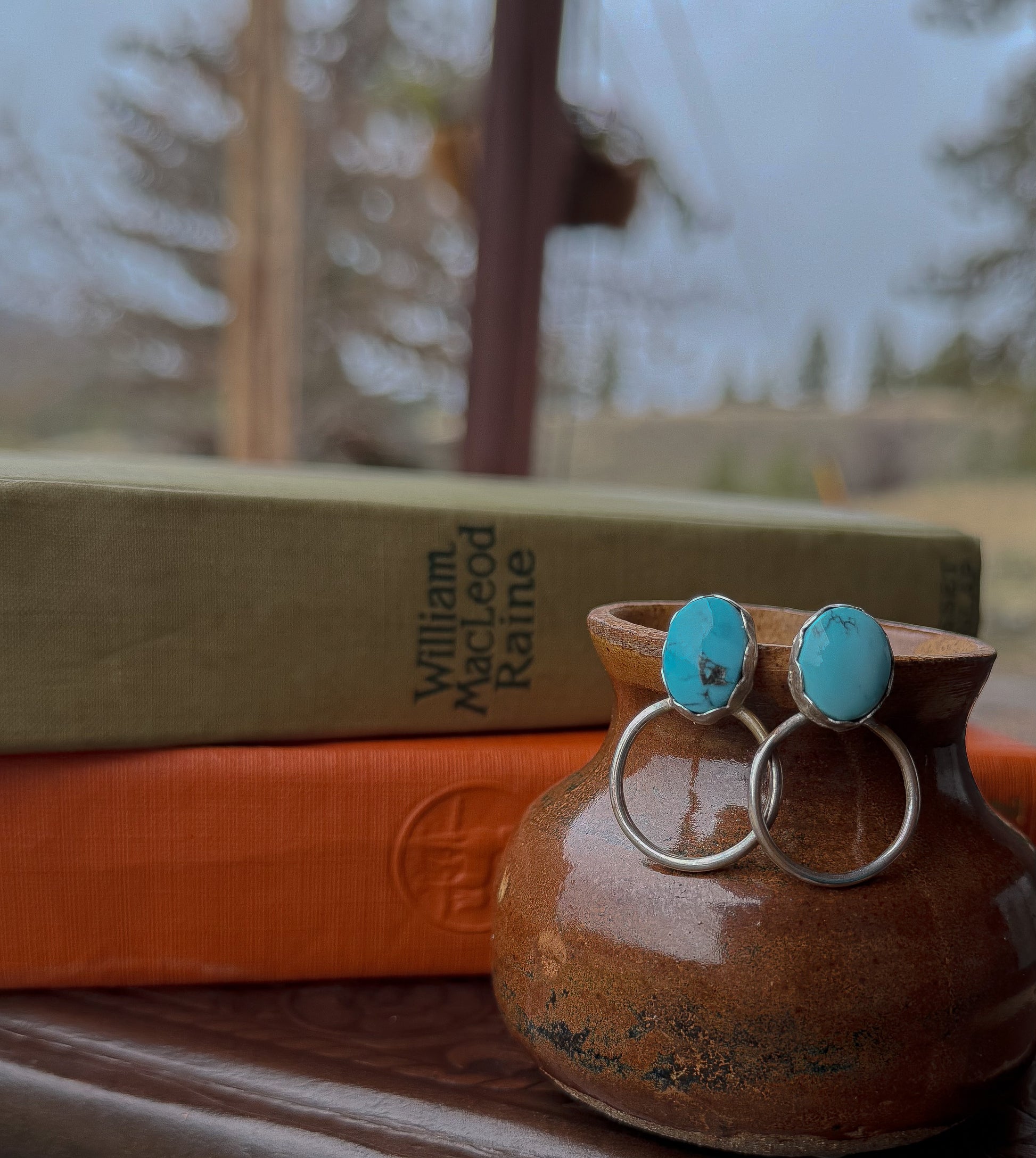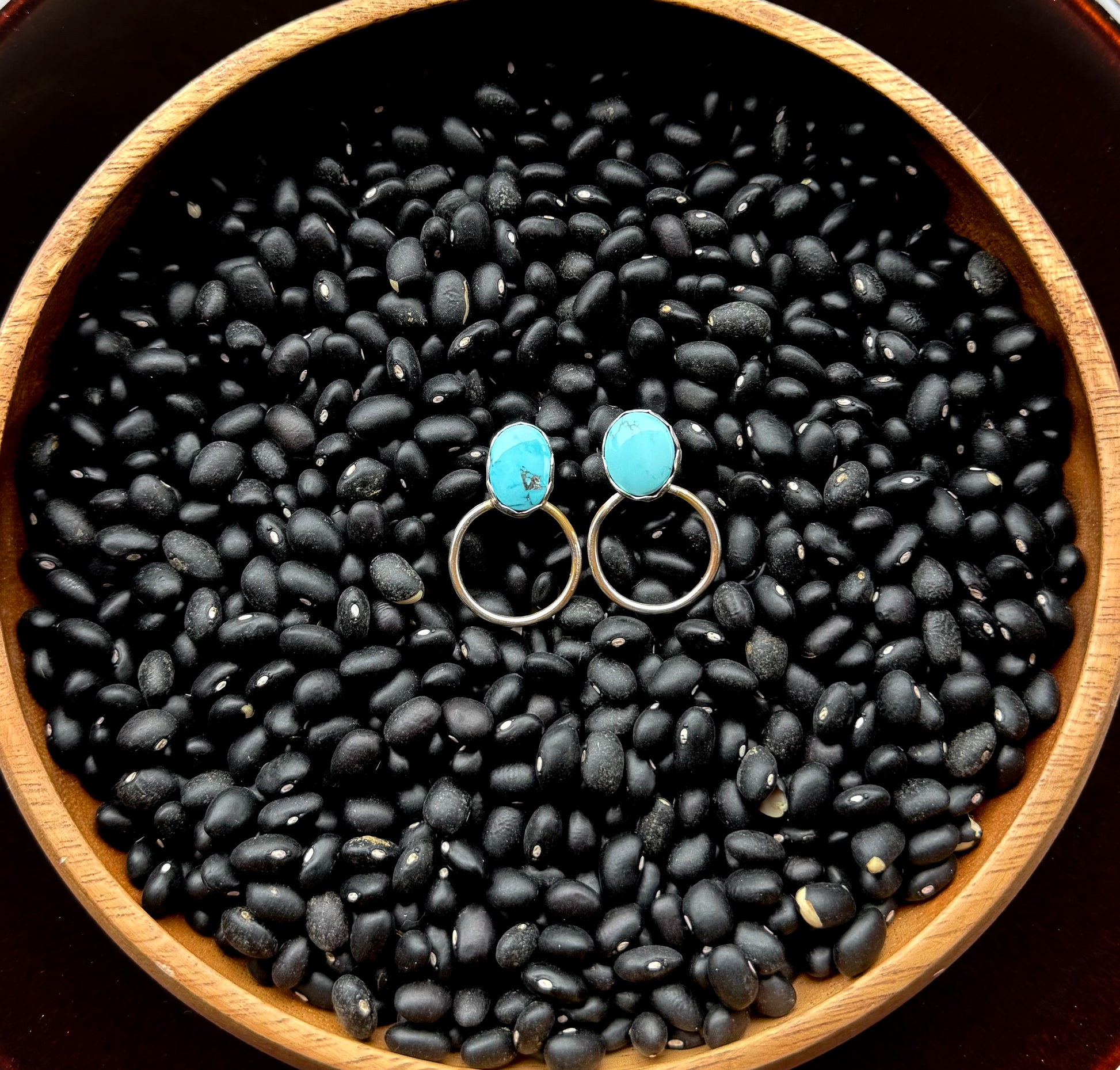 Sterling Silver & Kingman Turquoise Stud With Hoop. Each pair backed with rubber earring backers.