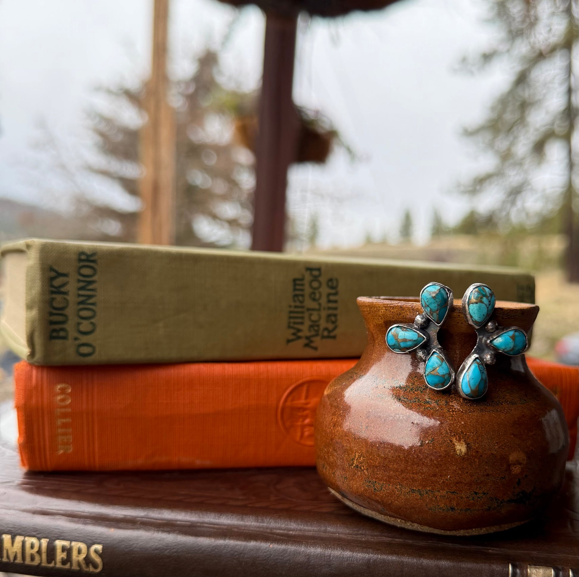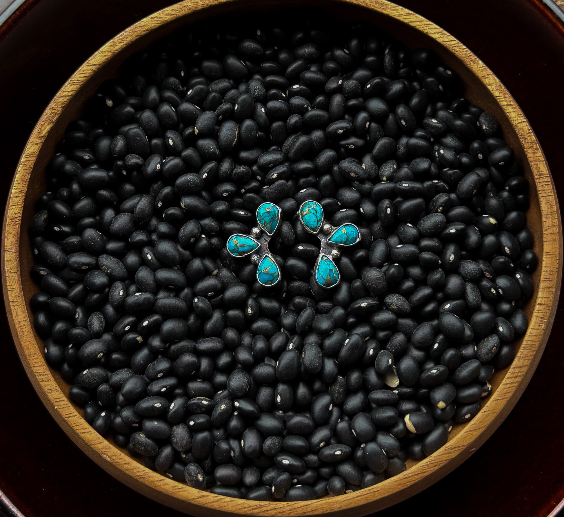 Sterling Silver & Kingman Turquoise composite. Each pair backed with rubber earring backers.